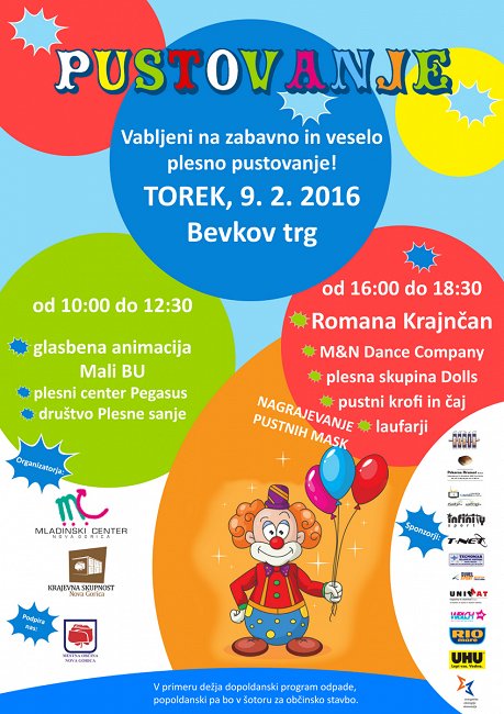 Prijazno vabljeni na pustovanje, ki bo v torek, 9. februarja, na Bevkovem trgu v Novi Gorici.