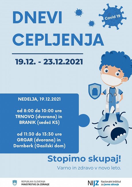 Od nedelje, 19. decembra, do četrtka, 23. decembra, se boste lahko brezplačno in brez naročanja cepili proti covidu-19.