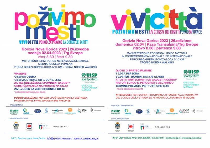 Šestindvajseta izvedba prireditve Vivicittà – Poživimo mesti se navezuje na še starejšo tradicijo čezmejnih prireditev in športno povezuje obe mesti. Največje zasluge pa je prireditev imela pri podiranju mejnih pregrad s številnimi izvedbami teka na mejnem prehodu Sv. Gabrijela na Erjavčevi ulici, s fizičnim odprtjem mreže na trgu pred severno železniško postajo leta 2003, tik pred vstopom Slovenije v EU ter s skupno uporabo Trga Evrope od leta 2008 vse do današnjih dni.