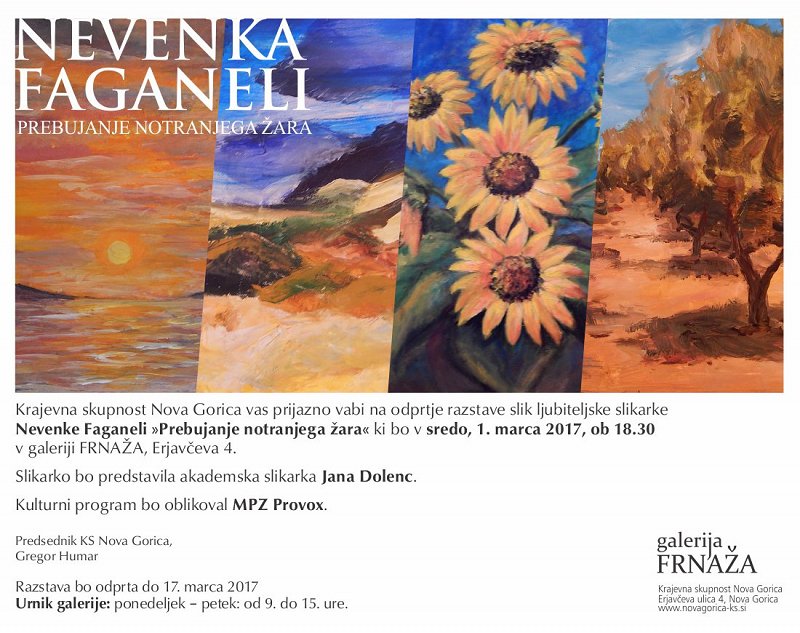 Prijazno vabljeni na odprtje in ogled razstave Nevenke Faganeli.