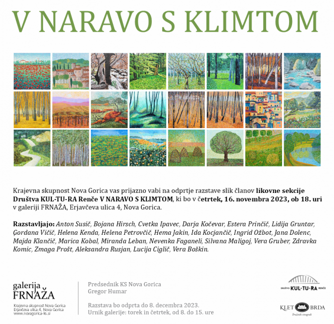 Vabljeni na ogled razstave del likovne sekcije KUL-TU-RA Renče V NARAVO S KLIMTOM.